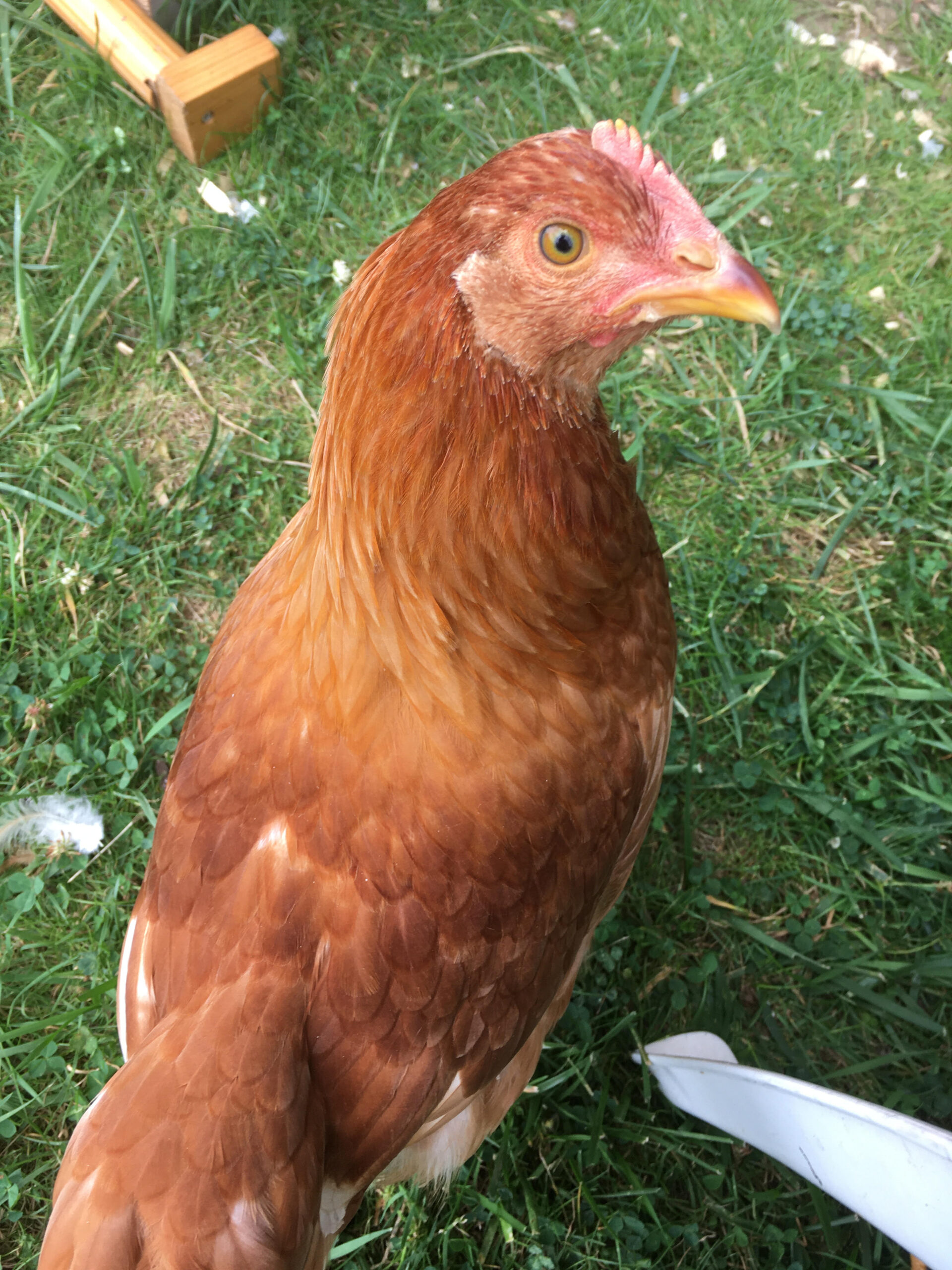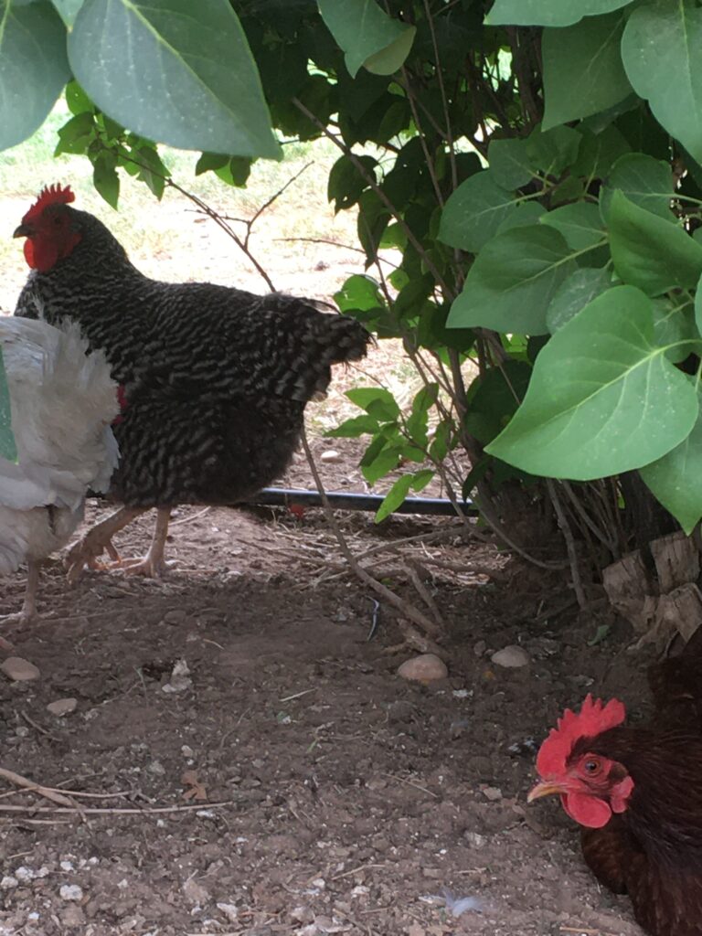While on vacation we visited family and friends! One of our many Tanner family cousins had their chickens roaming around their yard. We spent a lot of time playing card games with our cousins, but I also went out for a few minutes to see their birds. I tried to tell their chickens about their very distant relatives, but I’m afraid they wouldn’t give me the time of day. All ladies walked away except for one. This lovely gall was extremely invested in our conversation. 😉